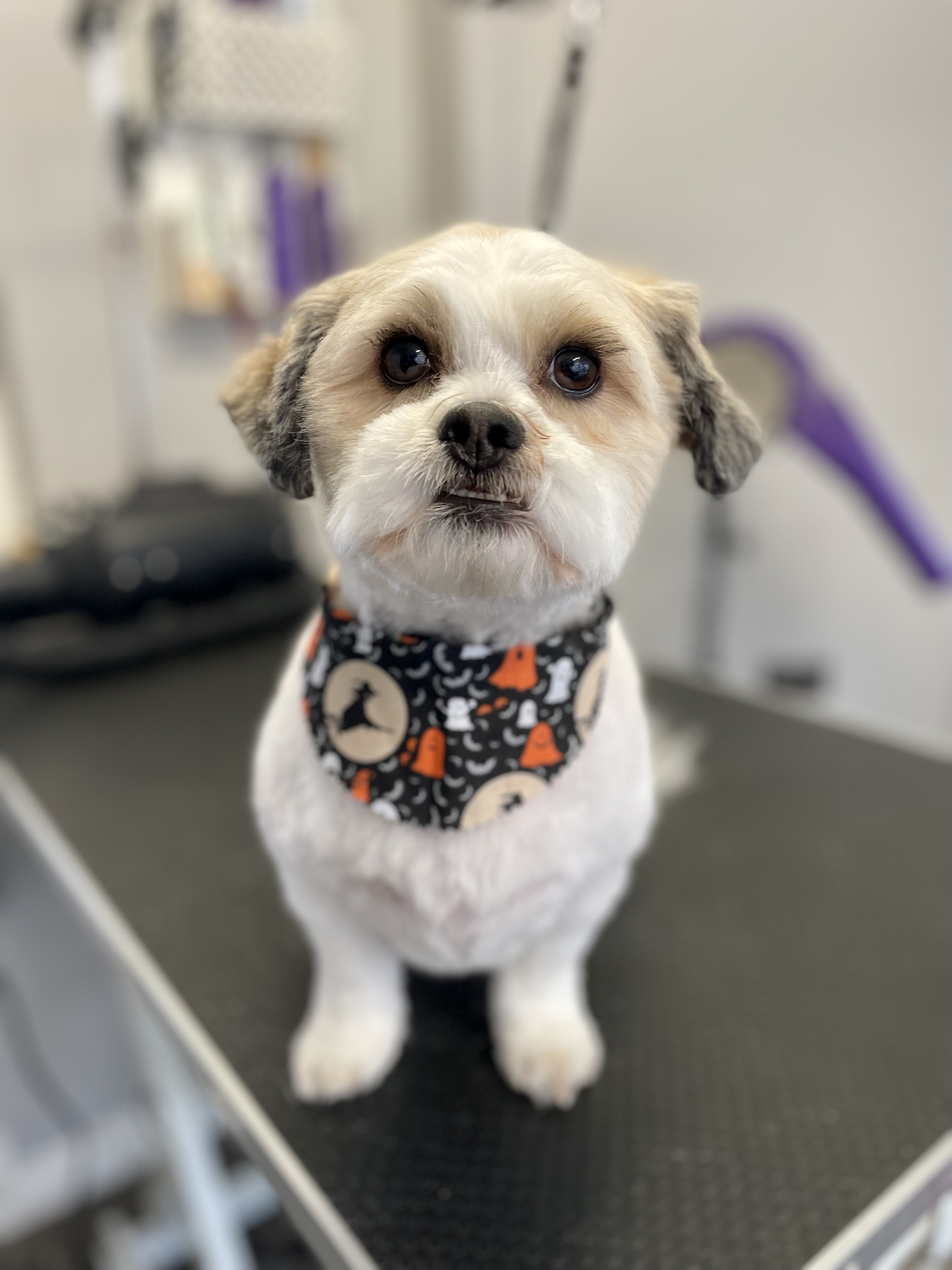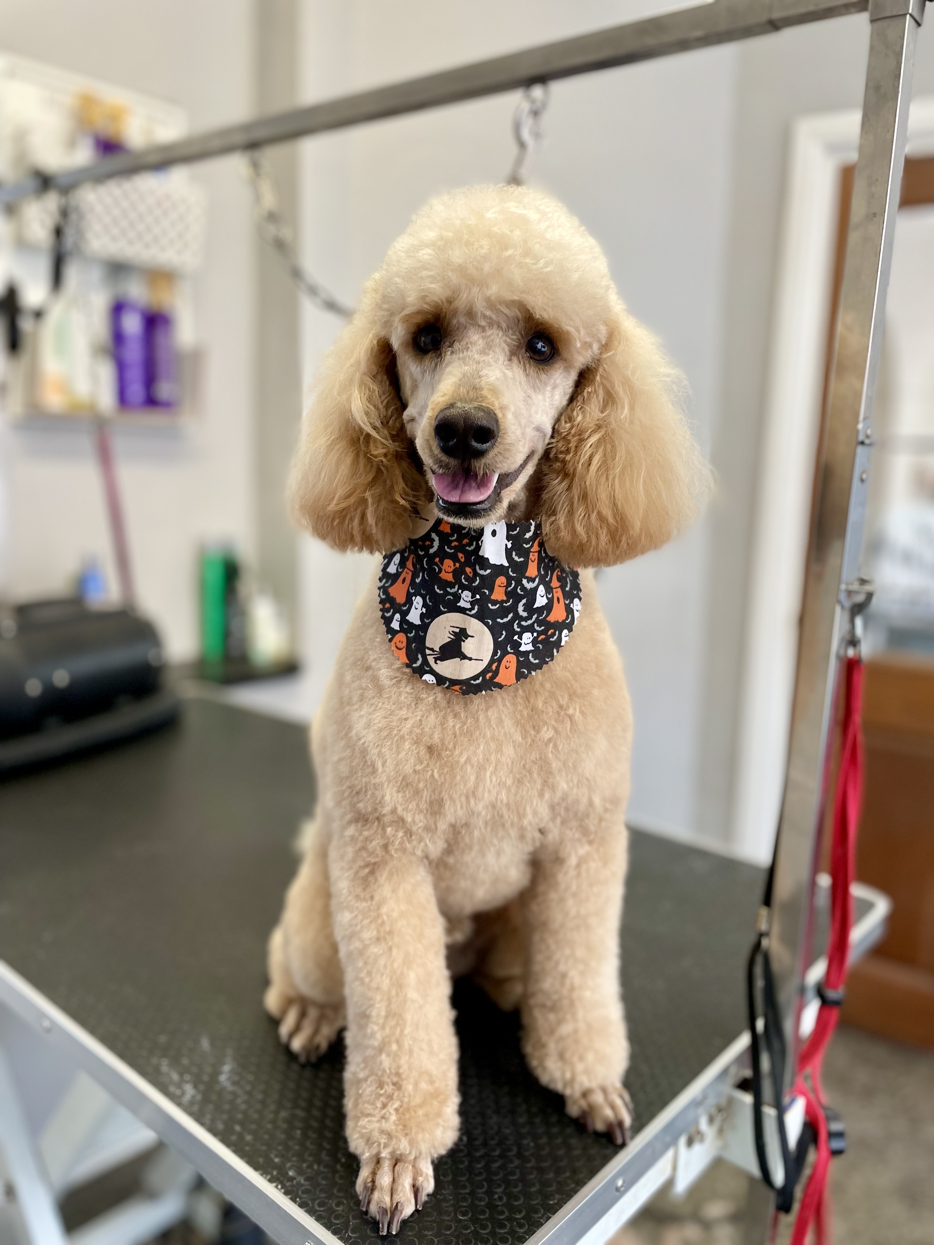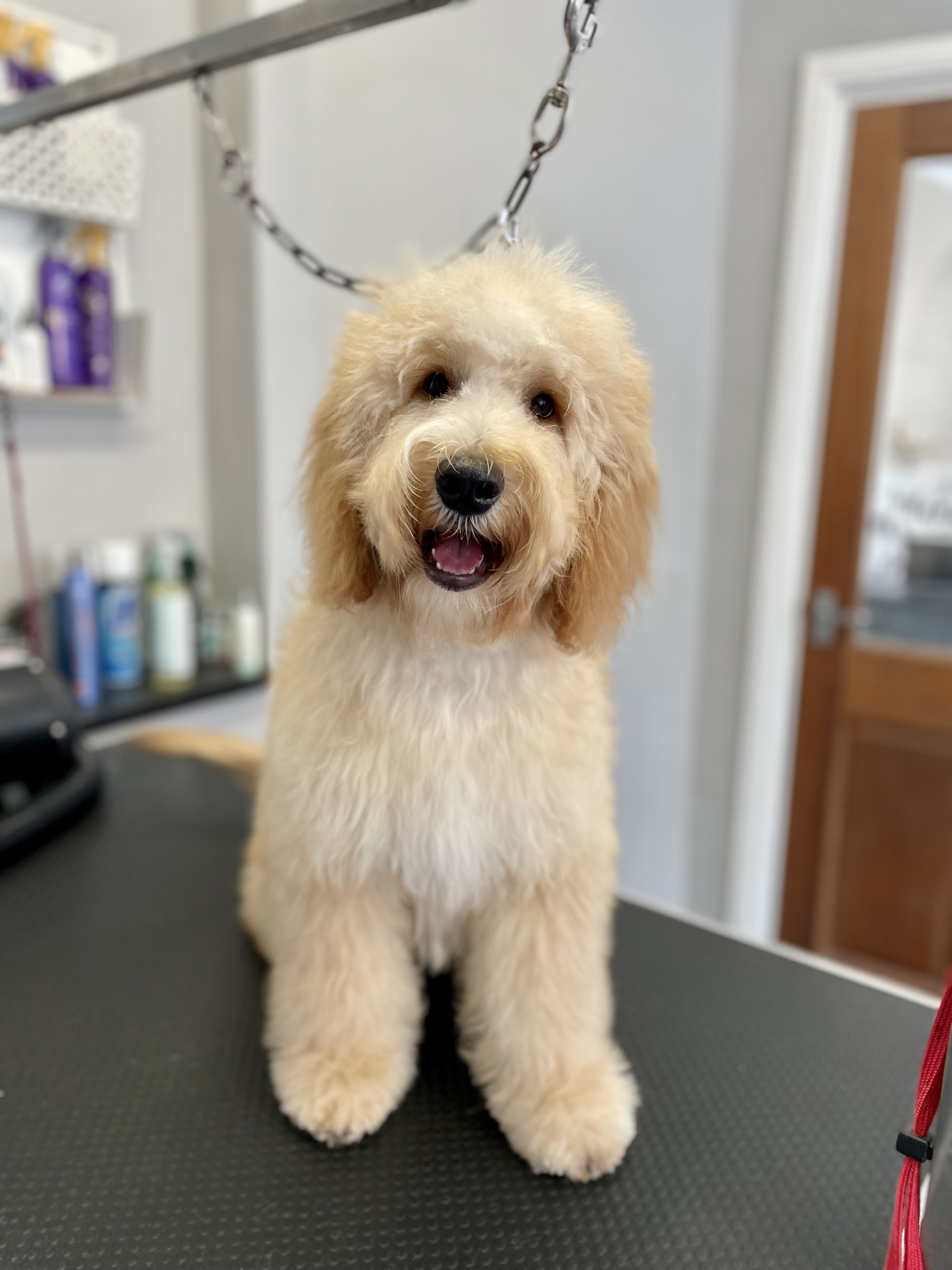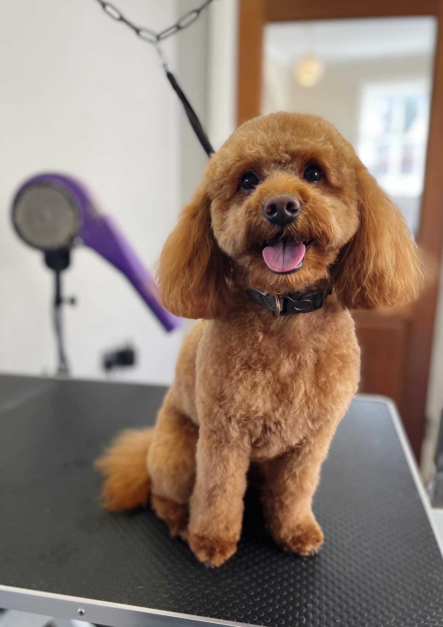 Includes bath, fluff dry, style, face and feet trim. Please note does not include a nail trim. Prices from £38, breed dependant please ask for more details.